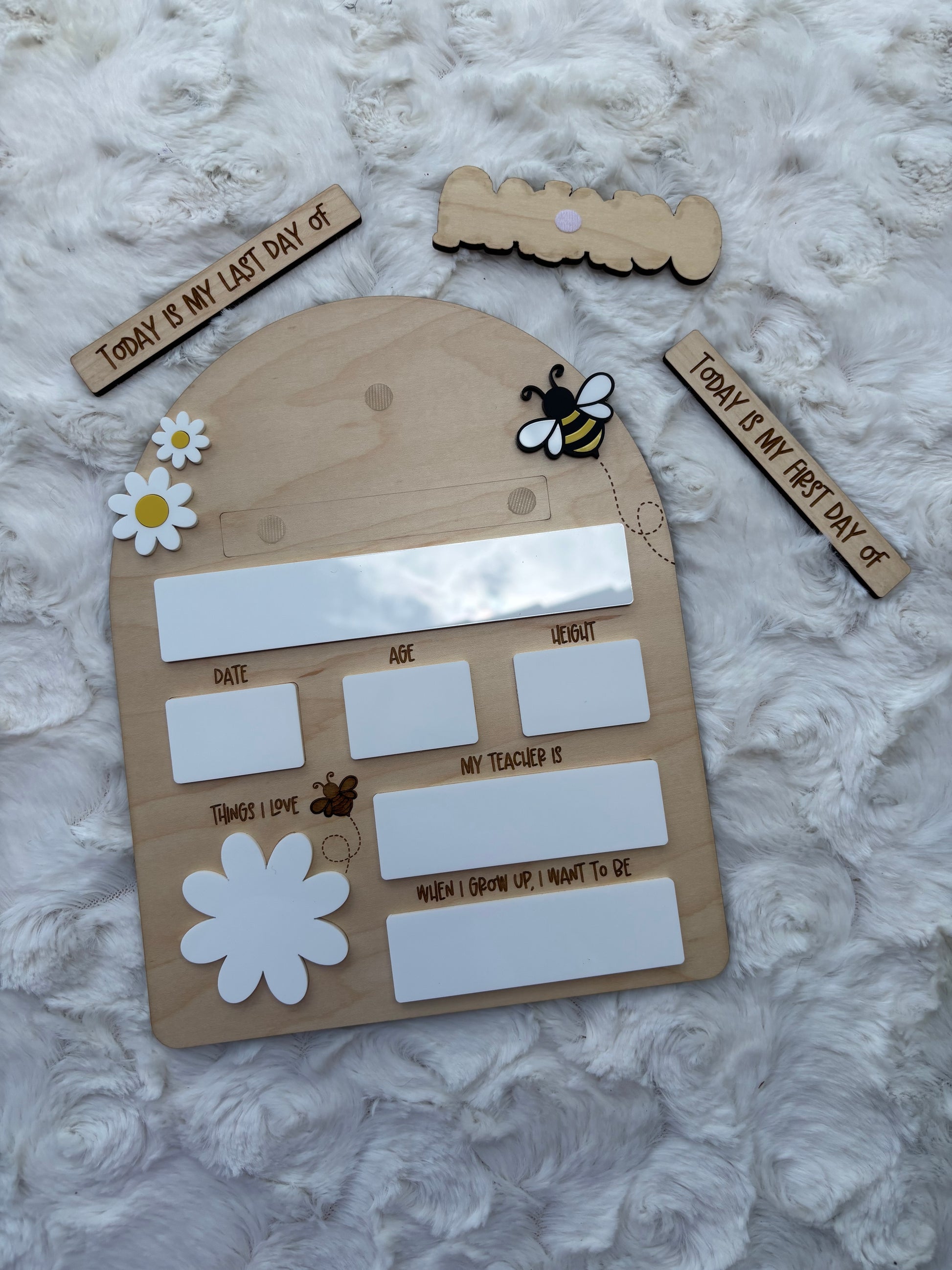 Introduce the new First/Last Back to School Board, a must-have for the upcoming school year. Share your child's back to school journey with the unique "about me" board photo prop. Capture precious memories and create a lasting keepsake. Perfect for all ages.